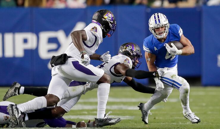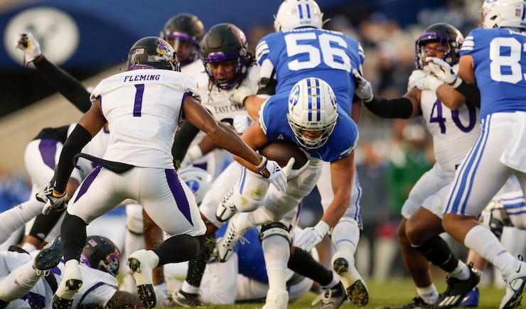 The Cougars rushed for 244 yards, averaging 5.8 yards per carry, and held the ball for nearly 34 minutes, but it wasn’t enough. BYU finished with 388 yards, while ECU had 424.