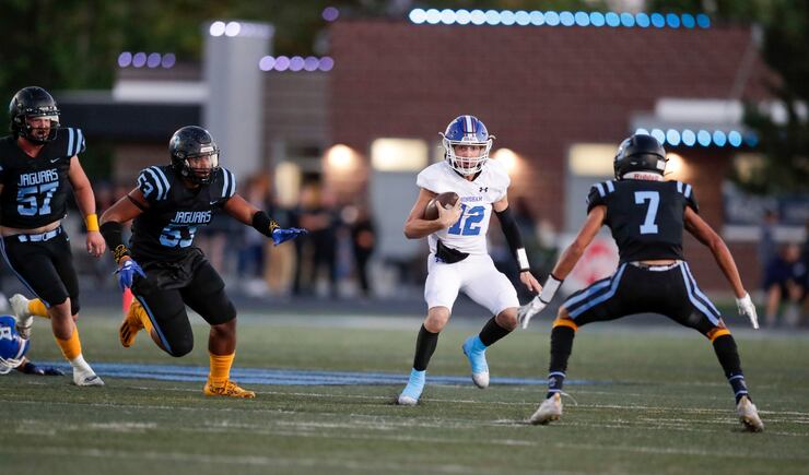 In one of the more dramatic games of the evening, Olympus picked up a come-from-behind win over Highland after losing their starting quarterback to an injury late in the fourth quarter. Receiver Luke Bryant stepped in at quarterback for Olympus in the final minutes of the game while the Titans were down by a touchdown to the Rams. Bryant drove the offense downfield and scored a game-winning touchdown with less than a minute remaining on a 4-yard run.