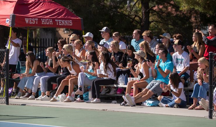 Skyridge’s Savannah Johnson and Kaia Sperry also won in No. 1 doubles. With the UHSAA’s new scoring system, which allowed players to earn one point for their team in the play-in round followed by two points in the first round, three points in the quarterfinals, four in the semis and five in the championship round, the doubles teams accumulated 30 points — more than one-half of the team total.