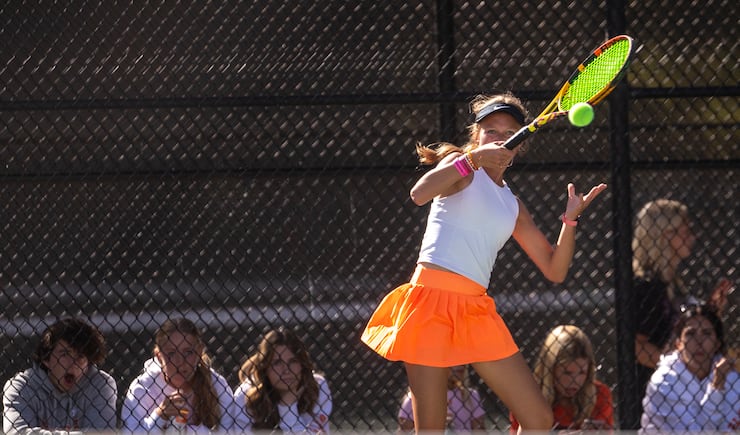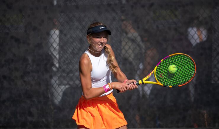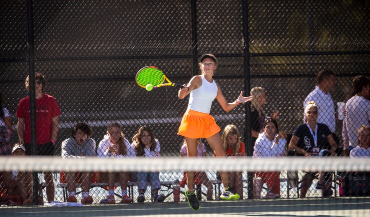 The Falcons’ doubles dominance also allowed them to overshadow an impressive performance by Farmington’s Anna Frey, a freshman who won in straight sets — 6-0, 6-0 — in her first three matches and rolled past Layton’s Tia Christopulos and Skyridge’s Bella Lewis Saturday to possibly claim to be Utah’s best high school singles player.