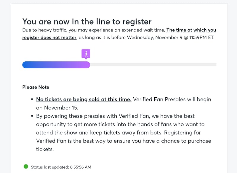 On Nov. 1, Swift fans flooded Ticketmaster’s website to get in the waiting room to register for the TaylorSwiftTix Presale powered by Verified Fan.