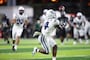 Utah State forced four turnovers in the game, three of which were interceptions. Two of those came courtesy of redshirt freshman Ike Larsen, who returned the second 36 yards for what ultimately was the game-winning touchdown.