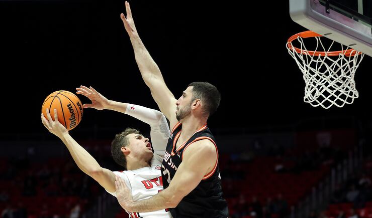 Former BYU center Kolby Lee, who took a year away from basketball and was selling cars for a living at this time last year, led Idaho State with 15 points and four rebounds. At times, Lee went against another former BYU center, Utah’s Gavin Baxter, who is still on a minutes restriction but had two points and two rebounds in nine minutes.