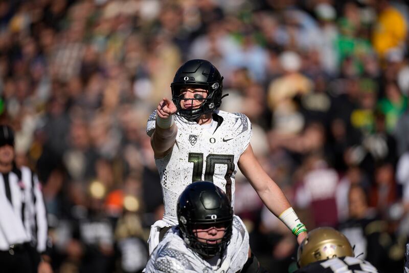 Bo Nix, Oregon quarterback: The Auburn transfer has completed 219 of 300 passes for 2,775 yards, with 24 touchdowns and five interceptions, and he’s rushed 78 times for 516 yards with 14 TDs.