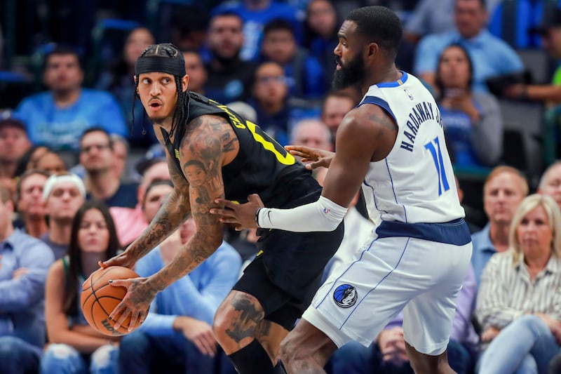 DALLAS — The Utah Jazz had a chance at the end on Wednesday to tie things up with a 3 and send the game into overtime, but a Jordan Clarkson shot from the corner came up short and the Dallas Mavericks won, 103-100.