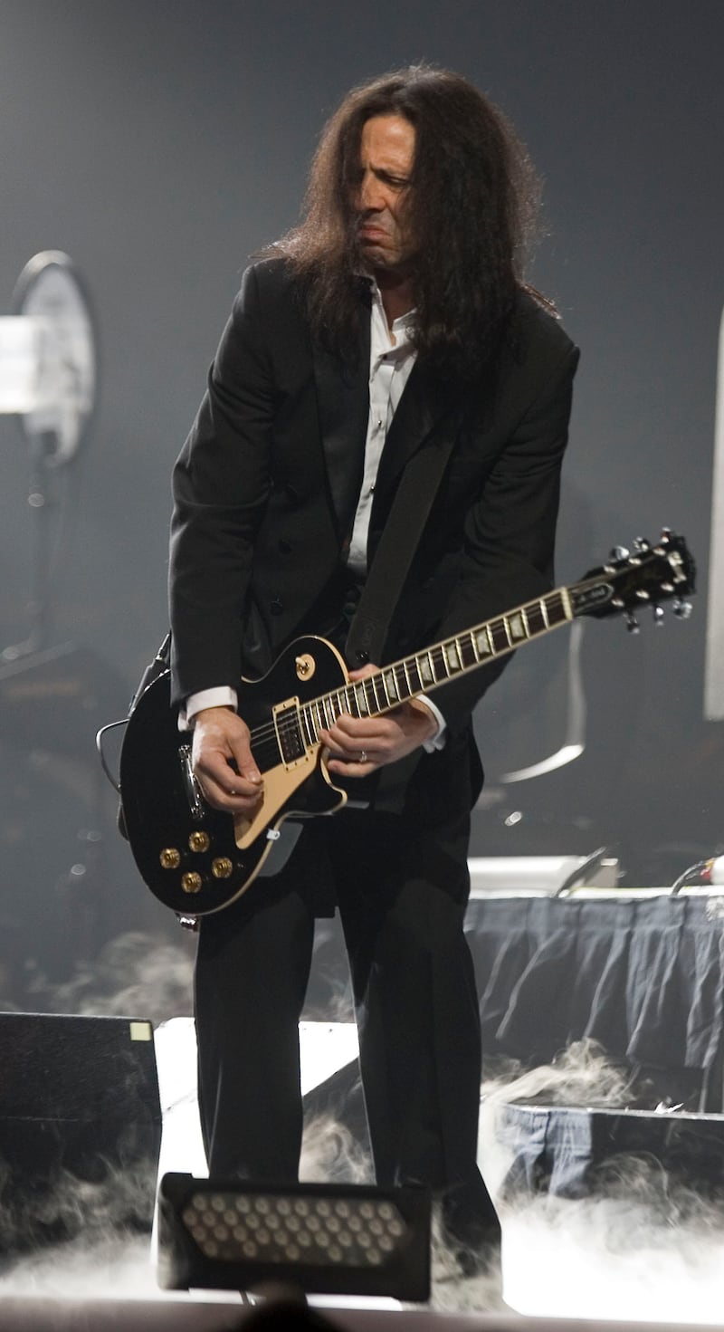 Pitrelli recalled seeing an older couple wearing crocheted Christmas sweaters with reindeers on them. Directly next to that couple sat a man in a Slayer hoodie. The guitarist said he did the sign of the cross and thought to himself, “This is either going to go really great or really bad.”