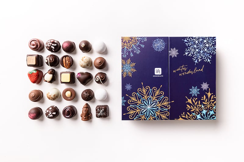 features a pretty array of fine chocolates, including a darling penguin. And instead of the typical 24 items, it has a Christmas Day bonus, too. $85.