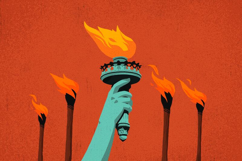 Speaking of the rioters who attacked the Capitol on Jan. 6, 2021, he said, “It was an enraged mob that had been whipped up into a frenzy by a president repeating over and over again the Big Lie that the election of 2020 had been stolen. It’s a lie that fueled the dangerous rise in political violence and voter intimidation over the past two years.”