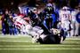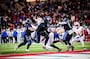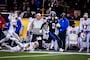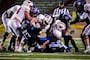 After a series of timeouts, the Mustangs attempted their two-point conversion. After pausing for a moment, Mordecai tried to score up the middle on a QB draw.