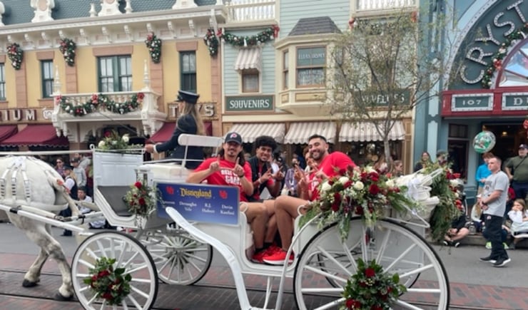 Wednesday afternoon, the Utes spent time at Disneyland Park, where coach Kyle Whittingham and his four team captains rode horse-drawn carriages through downtown Disneyland during a parade honoring No. 8 Utah and its opponent, No. 11 Penn State.