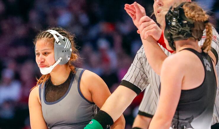 Detoles wasn’t the only wrestler who finished their season undefeated, as Fremont’s Brinlee Gines (130) pinned defending champion Neida Valle in the third period to win her first state championship and finalize her season record at 35-0.