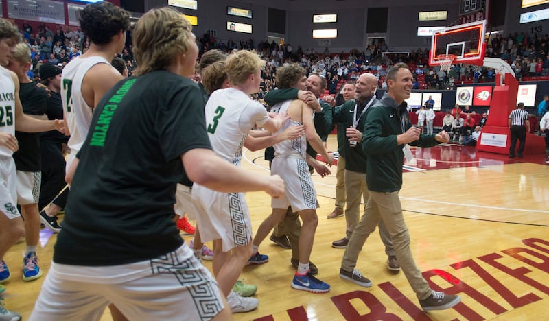 Hammer’s hot shooting in the third quarter — 4 for 4 on 3-pointers — had helped Snow Canyon shoot its way back into the game after a very slow start, so Hammer was the perfect player to try and bury the game winner. He airballed the runner though. No problem. Simmons was in perfect position to corral the rebound and put it back in off the glass.