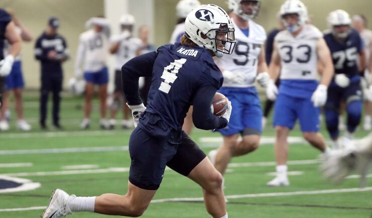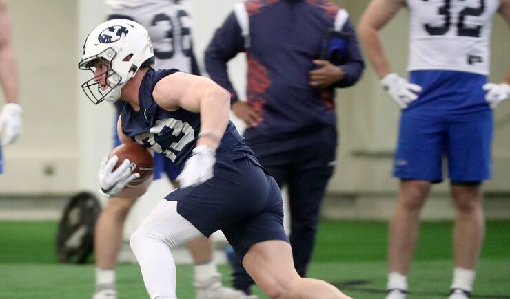 • A couple players have switched jersey numbers, as is usually the case every year. Tight end Dallin Holker has gone from No. 32 to No. 5 and linebacker Ben Bywater has gone from No. 33 to No. 2.