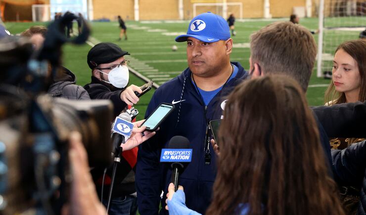 BYU opened spring football practices on Monday, probably for the first time ever in February, and head coach Kalani Sitake says he liked what he saw from almost every position group on the team before any player threw or caught a pass, or participated in a drill.