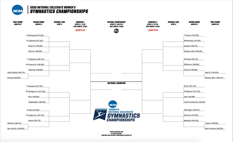 Early Tuesday morning, the NCAA unveiled the complete bracket for the 2022 NCAA women’s gymnastics championships, in other words the postseason.