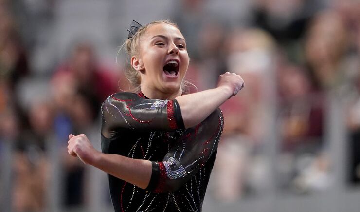 Grace McCallum and Lucy Stanhope scored a 9.8625 and a 9.8500, respectively, while Alexia Burch continued her run of postseason excellence with a 9.9250.