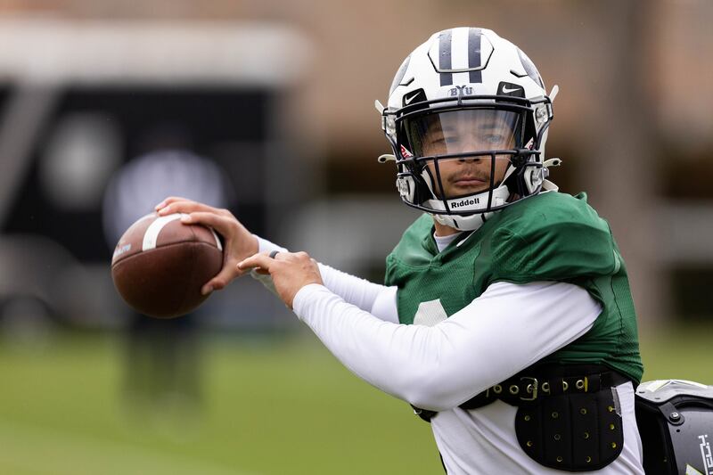 - Chris Brooks: If you didn’t know Brooks was a newcomer from Cal, you would think he has been at BYU his entire career. The 6-foot-1, 235-pound transfer running back has done his part to blend into the new surroundings, on the field and off. His skillset and adaptation to the playbook has created an expectation that he will fill the shoes left by Tyler Allgeier, or at least bring his own and run wild in those. The massive offensive line will have a lot to say about his success, but Brooks has been impressive with his ability to run, catch out of the backfield and talk “happy smack” right alongside his teammates.