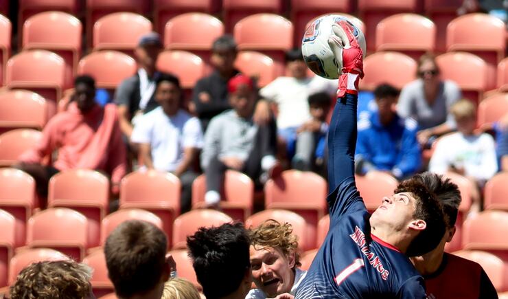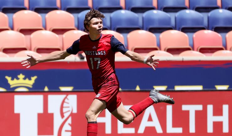 Under normal circumstances, time and space in the box is precious and Woolley would’ve cracked his shot the first time. On this day though, two Ridgeline defenders had collapsed on a Mason Manwaring run into the box, with all three colliding and falling down. That left no one to deal with Woolley when Camden Squires’ follow-up shot redirected to Woolley in the box. He calmly took a touch, picked his spot to the left of the keeper and smashed in the golden goal as Crimson Cliffs celebrated the 1-0 victory and its first 4A state championship in school history.