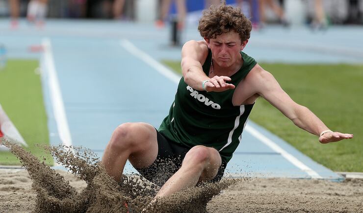 Long jump — 1. Jace Welsch, Provo, 21’07.75; 2. Bryson Roberts, Box Elder; 3. Carter Walker, Orem, 21’05.75; 4. Niko Brown, Alta, 21’02.25; 5. Jack Lee, Salem Hills, 21’01.50; 6. Marcus Loertscher, East, 21’00.25; 7. Cole Mortensen, Box Elder, 20’11.50; 8. Michael Robinson, Box Elder, 20’08.75.