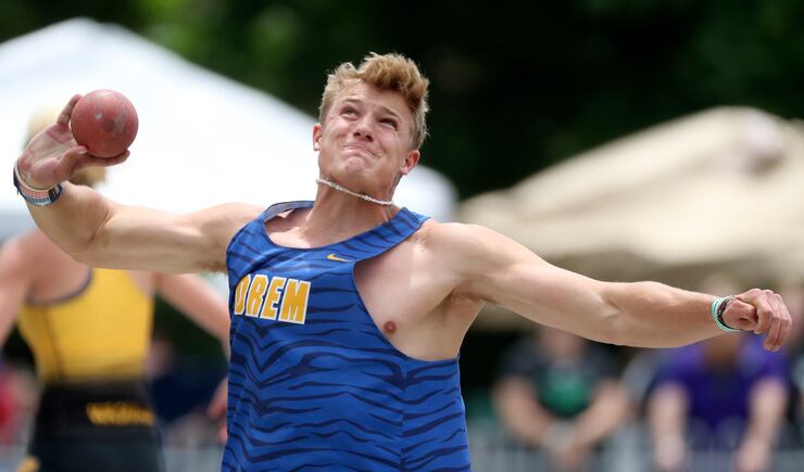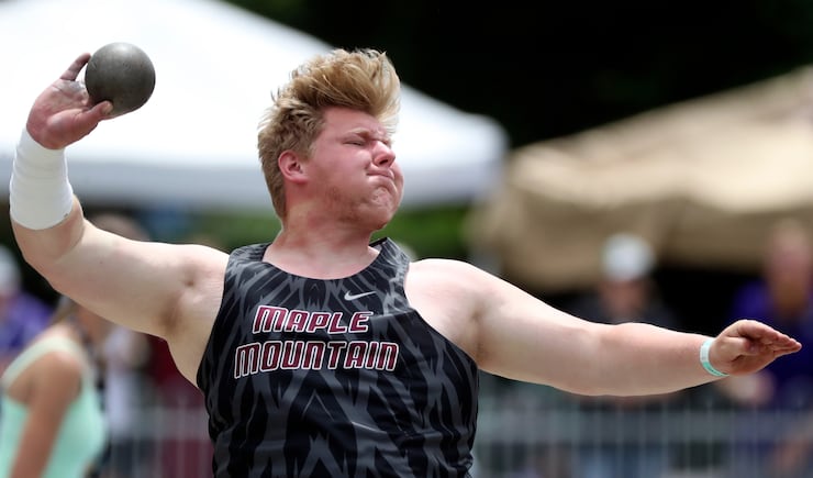 Shot put — 1. Mark Bryant, Orem, 60’06.50; 2. Erik Bryant, Orem, 60’03.50; 3. Teague Andersen, Lehi, 57’00.75; 4. Jesse Helton, Park City, 55’04.25; 5. Fisher Stokes, Maple Mountain, 54’06.25; 6. Brock Bissegger, Box Elder, 49’01; 7. Chad Pendleton, Maple Mountain, 47’05.25; 8. Jensen Somerville, Lehi, 46’06.25.