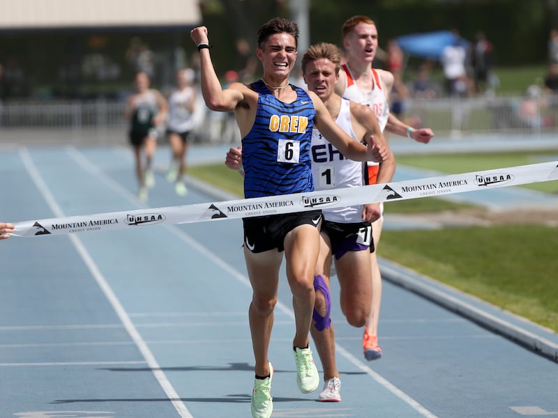 In the 3,200 boys, Orem’s Tayson Echohawk checked off what he’s hoping is the first of three individual wins at the 5A state meet.
