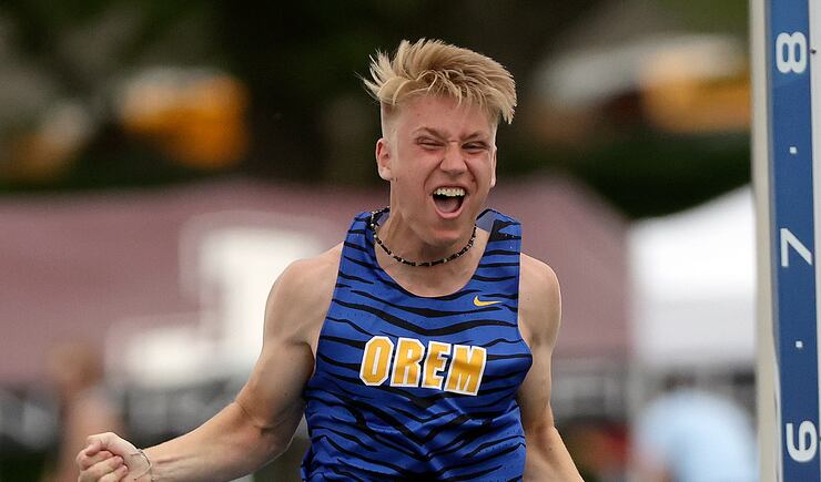 High jump — 1. Carter Walker, Orem, 6’05.50; 2. Cole Johnson, Orenm, 6’03.50; 3. Ethan Stoddard, Orem, 6’03.50; 4. Treven Strong, Springville, 6’01.50; 5. Matthew Topham, Stansbury, 6’01.50; 6 (tie). Noah Begay, Lehi; Michael Dodd, Springville, 5’11.75; 8. Joseph Eldridge, Park City, 5’11.75.
