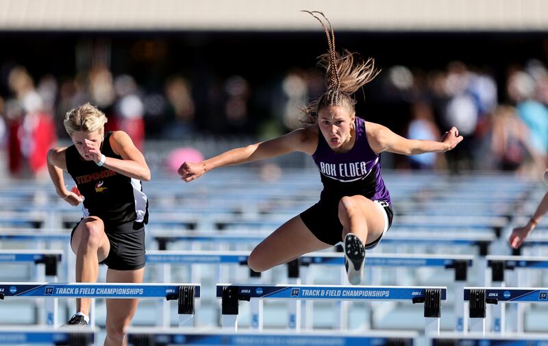 100 hurdles — 1. Sarena Mackley, Box Elder, 14.98; 2. Sarah Spangenberg, Viewmont, 15.14; 3. Olivia Taylor, Salem Hills, 15.44; 4. Shelby Johnson, Box Elder, 15.62; 5. Sydney Watson, Springville, 15.69; 6. Emily Gwilliam, Spanish Fork, 15.93; 7. Kirsten Oldham, Jordan, 16.13; 8. Gracyn Cook, Spanish Fork, 16.26.