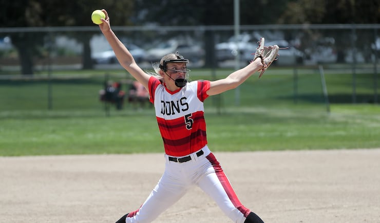 Lehi’s Grace Humes and Emerson Fuller combined on a great day in the circle for the Pioneers, with Humes striking out seven in a one-hitter against Bonneville and then Fuller striking out three in a four-hit victory over Uintah.