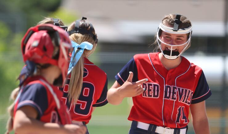 The Red Devils did exactly that in the first game, using a big five-run third inning to jump all over Lehi for the 7-3 win. Tyler Haveron provided the big hits as she drove in three runs and went 3 for 4 at the plate.