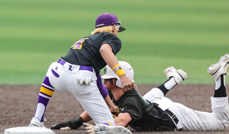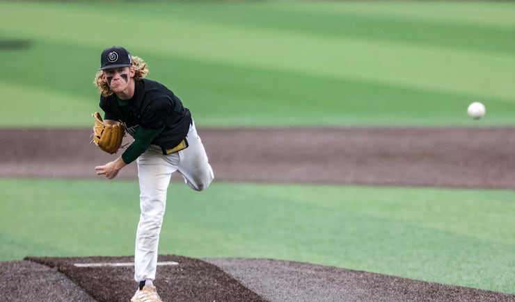 Maddux Madsen, who’d moved to catcher after exiting as the starting pitcher, gunned out the Olympus base runner trying to return to third base for the second out of the inning.