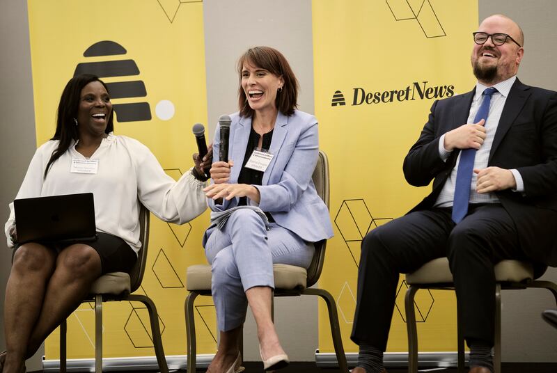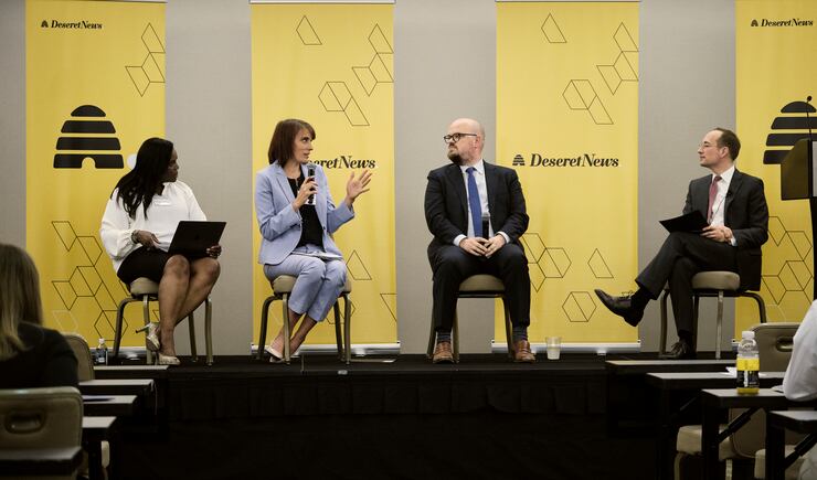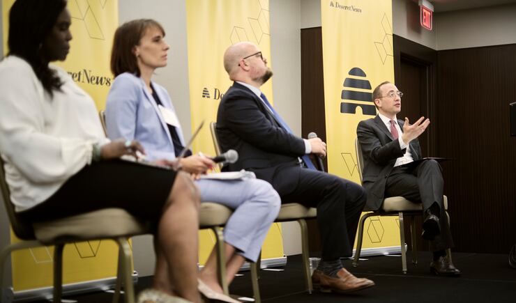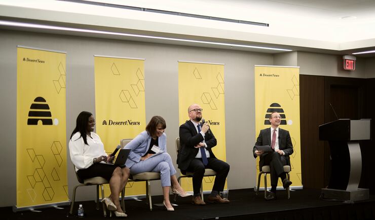 The Deseret News hosted a panel discussion on ethical journalism as part of the BYU Management Society’s Mid-Atlantic Conference on Moral and Ethical Leadership in Washington. The panel, moderated by Deseret National editor Hal Boyd, included McKay Coppins, a staff writer for The Atlantic; Dianna Douglas, a freelance podcaster and former NPR journalist; and Nkoyo Iyamba, a freelancer and former KSL journalist.