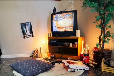 They sell campaign T-shirts, for example, of the presidential run of Joseph Smith and Sidney Rigdon. Laz also curated a space to feel like a midcentury modern living room. He also designed and ordered a custom pizza box with his riff on the Little Caesars pizza logo that had “Little Seer’s Pizza” written on it.