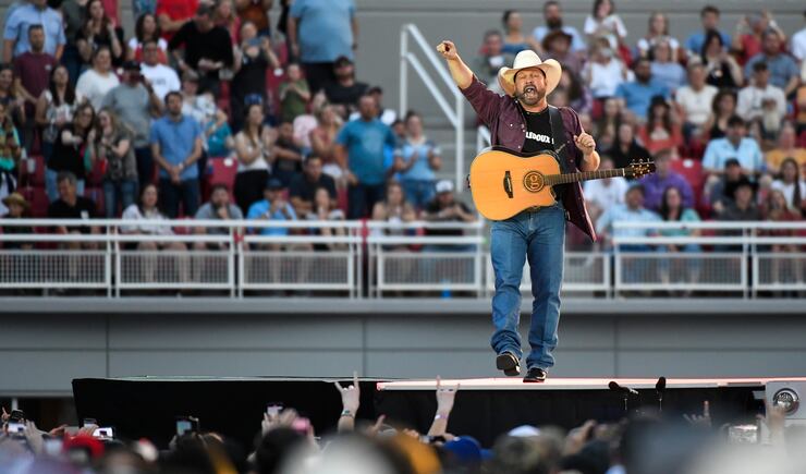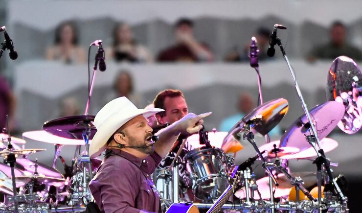 Once Yearwood exited the stage, Brooks transformed a stadium filled with 50,000-plus people into a kind of karaoke night. Sans band, he managed to make a stadium feel like a living room as he sang everything from Billy Joel’s “Piano Man” to George Strait’s “Amarillo By Morning” to Don McLean’s “American Pie.”