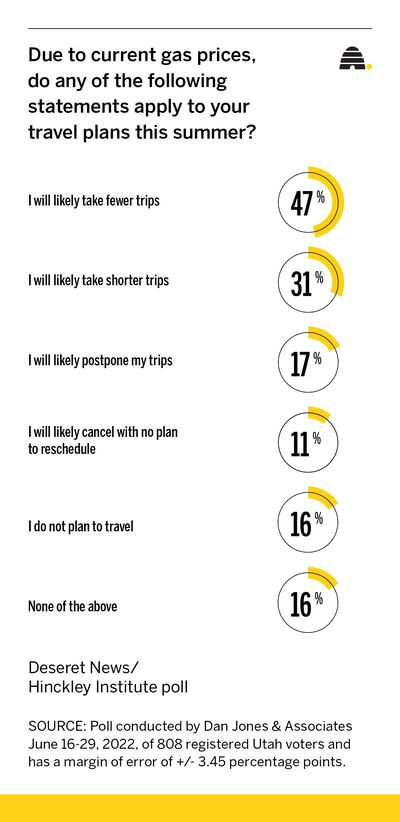 And, data gathered in the new Deseret News poll found that Utahns are feeling that extra cost in ways that are leading to changes in their summer travel itineraries.