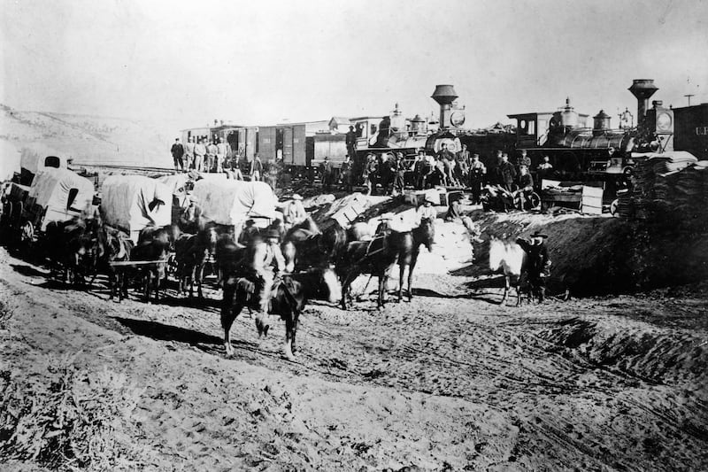 The state of Wyoming evolved out of the Pacific Railroad Act of 1862, which called for the construction of a railroad to connect the eastern and western United States. By July 1867, settlers were already arriving, and Gen. Grenville M. Dodge, chief engineer of the Union Pacific, began the survey for a city at Cheyenne, which would become the capital of the state. It was to be four miles square with well-organized blocks, alleys and streets. The Union Pacific, the beneficiary of a huge land grant from the government as an incentive to get the railroad constructed, started selling off the lots three days after Dodge surveyed them. The first went for $150.