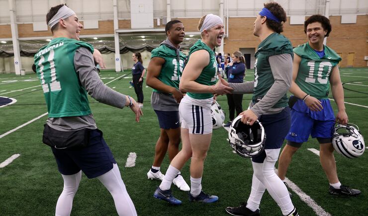 “I just feel like I know a lot of people in the community, and then you add playing for BYU as the quarterback, you create a lot more fans among the people you see. It has been really fun for me, being out in the public, seeing so many smiling faces, people who recognize me, and have conversations with them. … People are so kind. It is awesome.” — BYU quarterback Jaren Hall