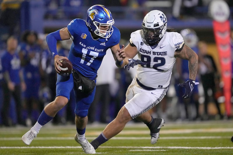 “Losing a guy like Marcus Moore up front, we all know the talent he had,” Utah State defensive coordinator Ephraim Banda said. “And Nick Heninger is a frickin’ superstar.”