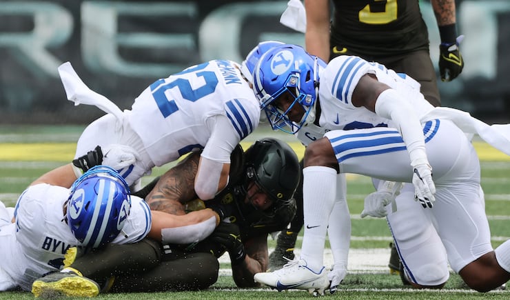 Sitake couldn’t put his finger on it, except to say that some early missed tackles and miscues allowed Oregon to seize the momentum, garner some confidence and get the Oregon fans who outnumbered BYU fans by about 3-1 squarely behind their team.
