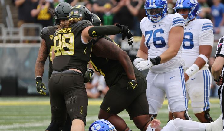 The No. 25 Ducks, themselves perhaps overrated when they began the season with a No. 11 ranking before getting trounced at Georgia, thoroughly embarrassed BYU to the tune of 41-20 in front of a sellout crowd of 54,463 at Autzen Stadium and a national television audience eager to see if these Western teams are frauds or legitimate.