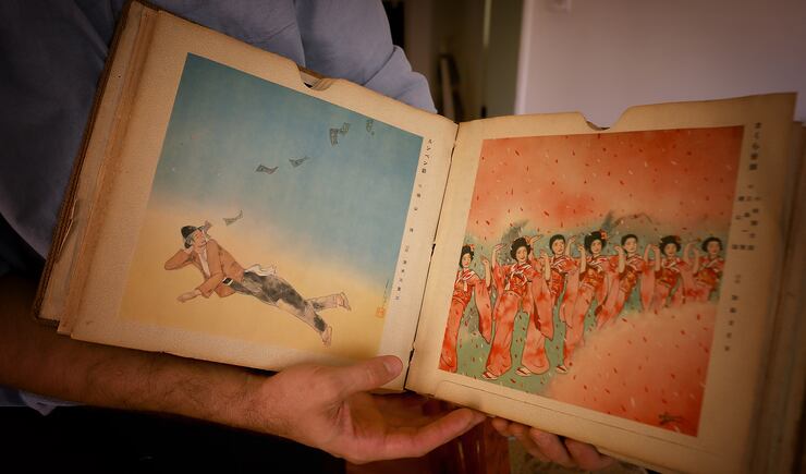 Frank walks me to a back room, where shoulder-high cabinets are packed with what appeared to be old photo albums. Instead of photos, every volume contained tattered paper sleeves with 78s inside, a type of record that hasn’t been produced since the late ’50s.