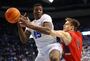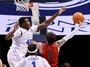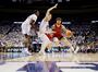 At that point, the Cougars scored nine straight, on layups by Hall and Traore, two free throws by Gideon George, and a 3-pointer by Spencer Johnson to give BYU a 52-51 lead at the 3:09 mark.