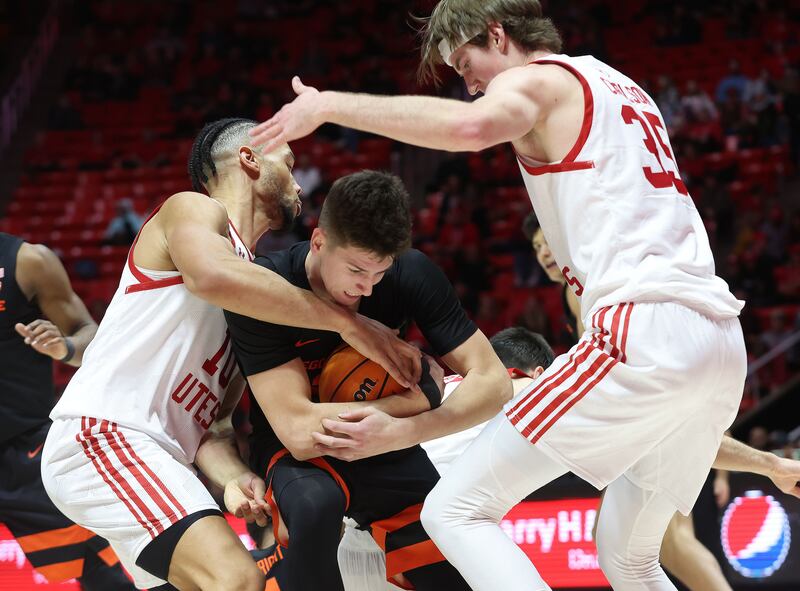 Visiting Oregon State made three straight 3-pointers to trim what was once a 13-point first half Utes lead to one, and many among the announced crowd of 6,471 at the Huntsman Center grew uneasy.