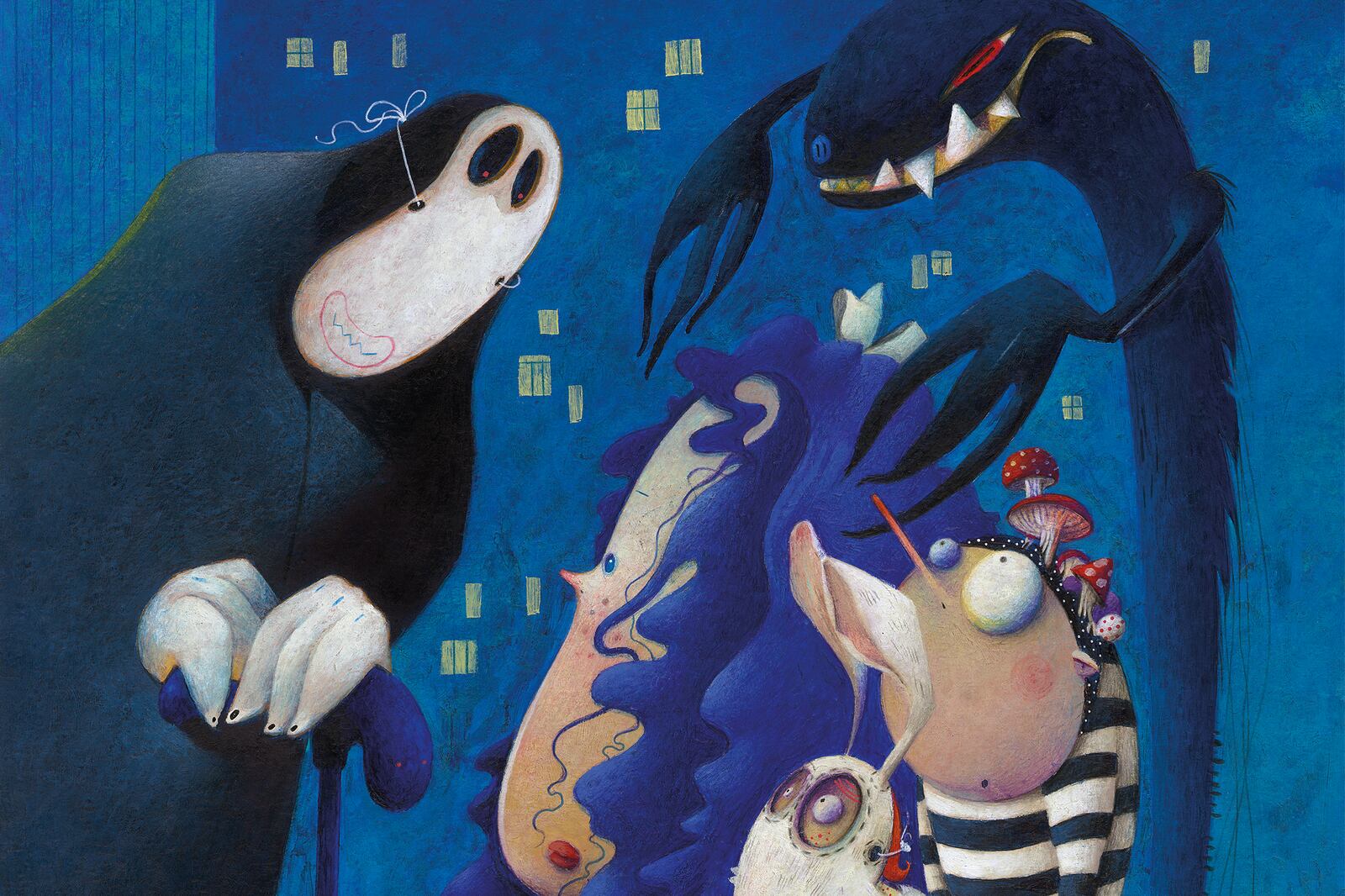 The door swings open. Out leaps a grotesque figure with leathered skin, a furry face, bloody fangs and glowing wicked eyes, growling and gesticulating and roaring like a beast. A werewolf! We scream. We can’t shut our eyes fast enough, can’t hold each other tight enough. We can’t run, either, paralyzed with fear and obligated to endure. Just as suddenly, the act is over. The phantom removes his mask to reveal an ordinary man: fair skin, graying hair, kind eyes. He teases us a little and offers a bowl. I choose sour straws: chewy, bitter and coated in sugar.