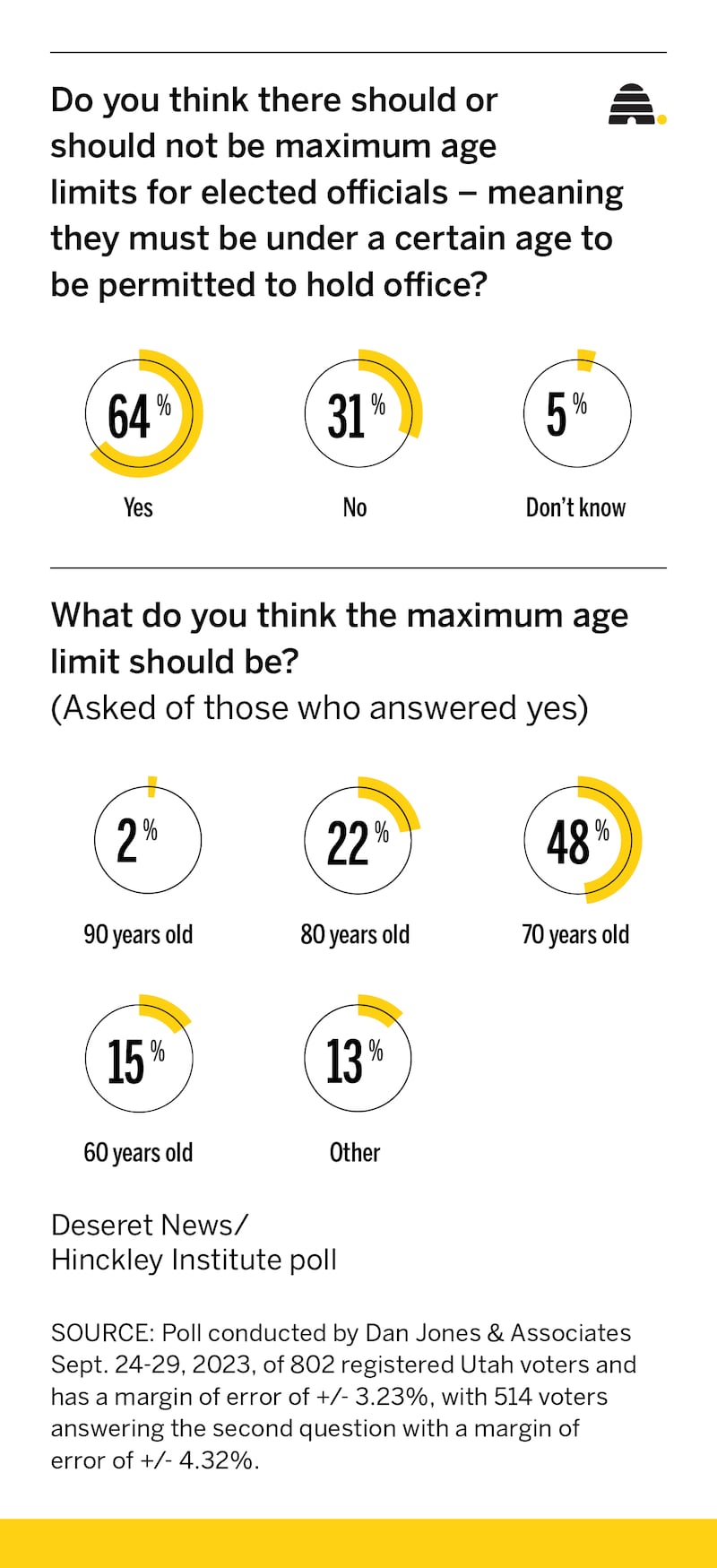 A new Deseret News/Hinckley Institute of Politics poll of Utah voters shows almost two-thirds of them want an age limit for presidential candidates, although they disagree about how old is too old.