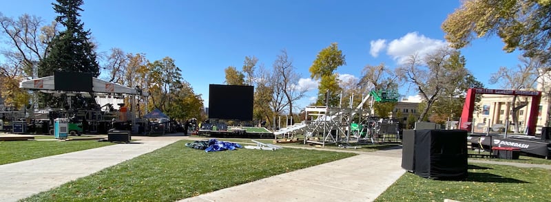 On a tight schedule akin to the setup and teardown that happens at big arena and stadium concerts, a horde of trucks rolled into Salt Lake City on Thursday, and the crew began constructing the main stage, setting up giant TV screens, speakers and crowd barricades, among other things.