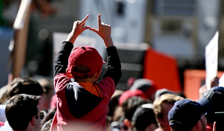 If Friday’s “Pat McAfee Show” crowd is any preview of what it’ll be like for “College GameDay” on Saturday, expect a boisterous crowd of red-clad fans behind the set.