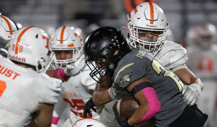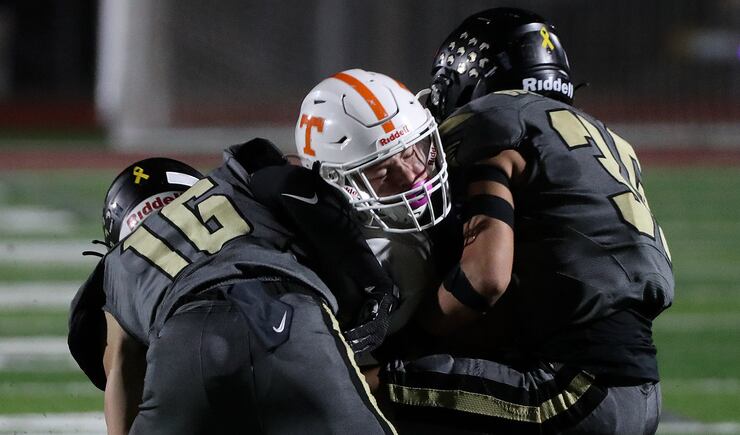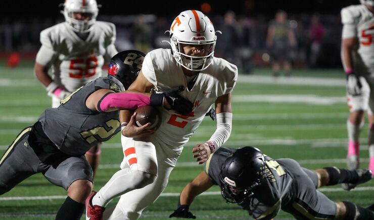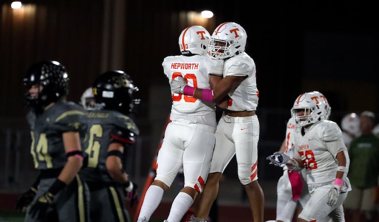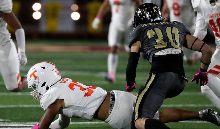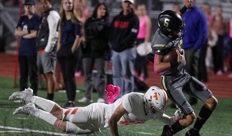 Timpview Thunderbirds captured the Region 7 title after defeating Maple Mountain Golden Eagles 42-20 at Maple Mountain in Week 9. After a high-scoring first half, Timpview shut things down defensively to wrap up Region 7 play with a perfect 5-0 record an a 7-2 overall record. It has a bye in Week 10. Helaman Casuga tossed three touchdown passes in the win, while Aisa Galea’i rushed for two TDs. Galea’i scored on a five-yard TD run just 45 seconds into the second half which stretched the T-Birds lead to 35-20 and spoiled any hopes of a Maple Mountain upset.