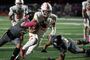 After Pleasant Grove went down 20-7 with 9:31 left in the third quarter, it outscored the Falcons 27-11 as Rasmussen threw four touchdown passes in the final 7:40 of the game and overtime. Rasmussen gave Pleasant Grove a 21-20 lead with 5:21 left in the game as he connected with Makai Peterson on a 10-yard TD pass, but Jackson Stevens engineered a go-ahead drive for Skyridge as he tossed a 28-yard TD pass to Trevan McClellan for the 28-21 lead with 1:52 left.