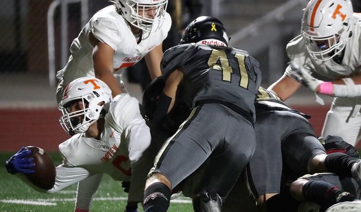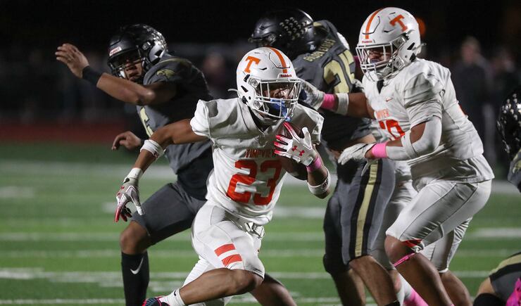 The Timpanogos Timberwolves (7-2) scored early and often on the way to a convincing 35-14 triumph over the Salem Hills Skyhawks (6-3) during this week’s Region 8 game. In their pursuit of a potential first-round bye in the 4A playoffs, the Timberwolves set the tone early and often building a 35-0 lead before the Skyhawks tacked on two late fourth quarter scores.