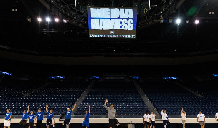The always-eccentric Mark Pope — just a few weeks away from beginning his fifth season at the helm of BYU’s program — invited all of the folks who cover his team to compete against each other on the hardwood for the first-ever “Media Madness” classic in Provo.